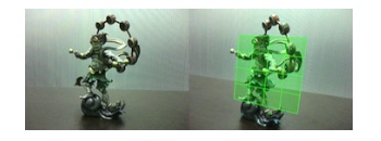 平面状の物体ではなく、立体的な形状を持つ対象物体を認識させる方式です。3Dモデルデータや複数毎の写真から3次元の特徴点データを事前に取得しARを実現します。