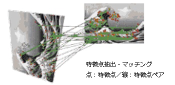 通常、建造物や一般的な風景をマーカーレス認識対象とすることは難しいですが、あらかじめ撮影された動画データなどから画像処理によって対象の3次元計測を行うことで、 これまでのマーカーレス型ARのように空間そのものを認識させることが可能です。